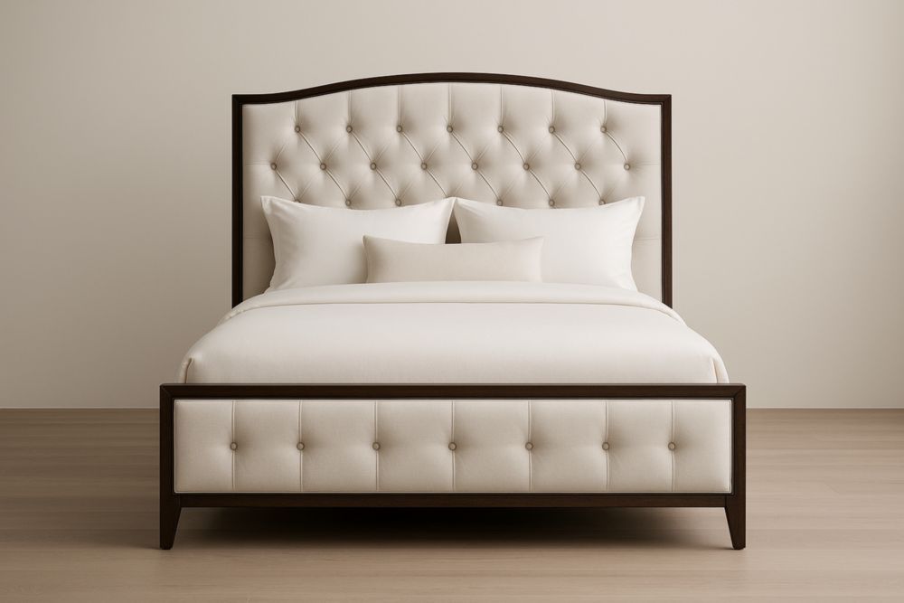 Letto Matrimoniale Imbottito in Legno e Tessuto Crema